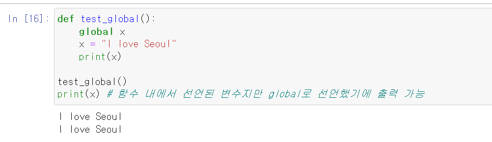 - 전역변수 (Global Variable) : 프로그램 전체에서 사용