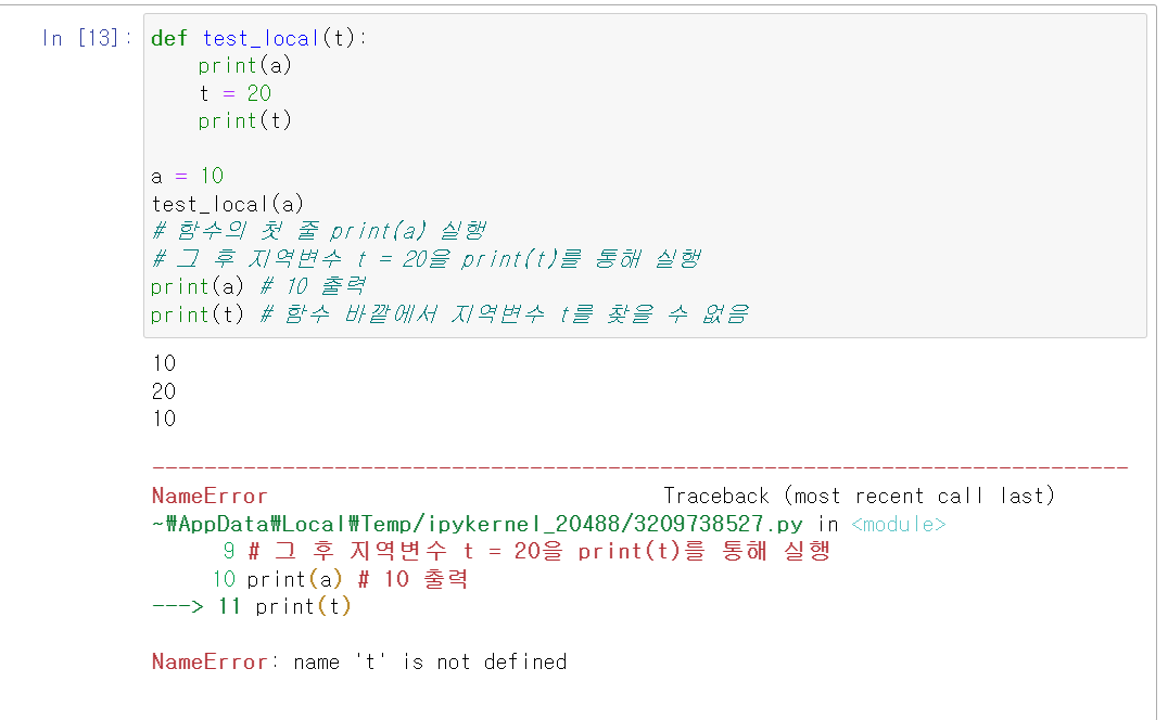 - 지역변수 (Local Variable) : 함수내에서만 사용