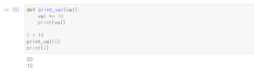 i 가 print_val의 인자로 넘겨졌을 때 i가 담고 있는 값인 10이 복사되어 함수로 넘겨졌으므로 함수 밖에서 i는 여전히 10이다.