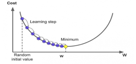 로 \(\eta\)의 learning rate를 \(g_t\)의 Gradient에 곱해가며 함수의 기울기를 낮은 쪽으로 계속 이동시켜 극값에 이를 때까지 반복하는 방법이다.