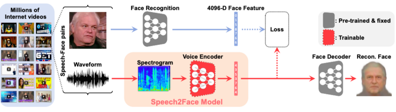 self-supervised 방식을 사용해 feature matching loss를 사용하고 voice feature가 face feature를 흉내내도록 학습한다.