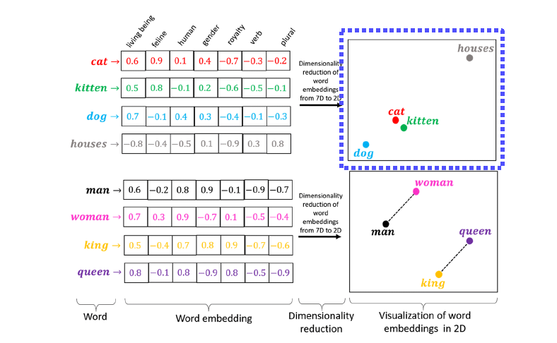 데이터에 등장하는 모든 단어들을 학습 후 단어들 간의 관계를 파악해 차원으로 나타내는 방법론이다. 분포 가설에 맞춰 예를 들어 '강아지' 라는 단어가 '귀엽다' '예쁘다' 같은 단어와 자주 등장하는 경우 이 빈도를 반영한 dense vector로 이 단어들에 대한 벡터화를 진행하면 '강아지' '귀엽다' '예쁘다' 세 단어의 벡터값은 유사하게 나온다. 이런 방법을 통해 의미적으로 가까운 관계를 표현할 수 있다.