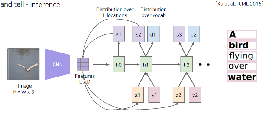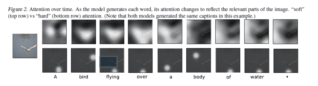 attention을 통해 학습 과정에서 단어 생성 과정에서 이미지의 어디에 집중해서 볼 지 학습한다.