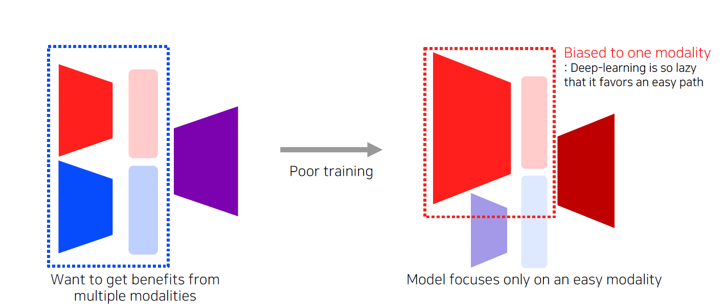 결과로 한 쪽의 모달에 편향된 결과가 되어 poor training이 될 수 있다.
