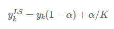 Label Smoothing의 식은 one-hot encoding이 된 label에 Uniform-distribution을 결합한다. 이 스무딩 파라미터를 \(\alpha\)라고 할 때,