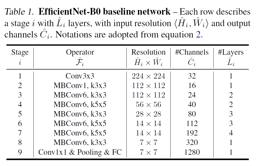 여기 속하는 각 \(\alpha \beta \gamma\)의 사이즈가 b0에서 각 1, 이후 숫자가 커질수록 늘어난다. 즉 모델의 크기가 커지고, 사용하는 자원이 많아진다고 생각하면 된다.