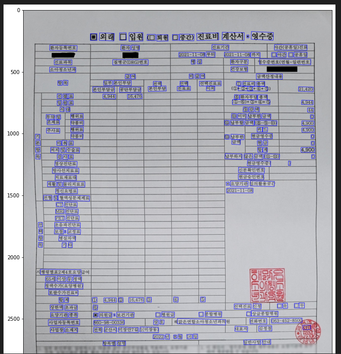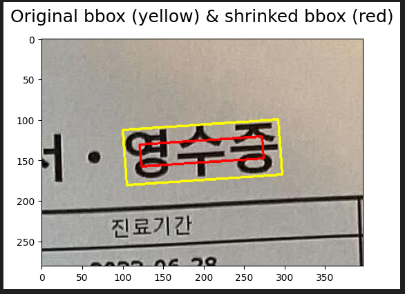 이미지의 ‘영수증’ 단어 부분을 추론하는 과정에 대해 설명.