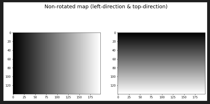 캔버스에 linear한 distance map을 생성한다. 왼쪽 캔버스는 좌측 변에 대한 distance map, 오른쪽은 윗변에 대한 distance map이다.